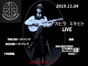 ■出演■ OA:MASAKATSERO / STEPNER / カッチャン / なかじー ナカヒラ ミキヒト ■日時■ 2019/11/4 Open & Start 19:00- ■料金■ 予約 \1,500 + 1D 当日 \2,000 + 1D ■場所■ 「シネマパラノイア」 山口県周南市新町2丁目29 Tel. 0834212435 Facebook Page