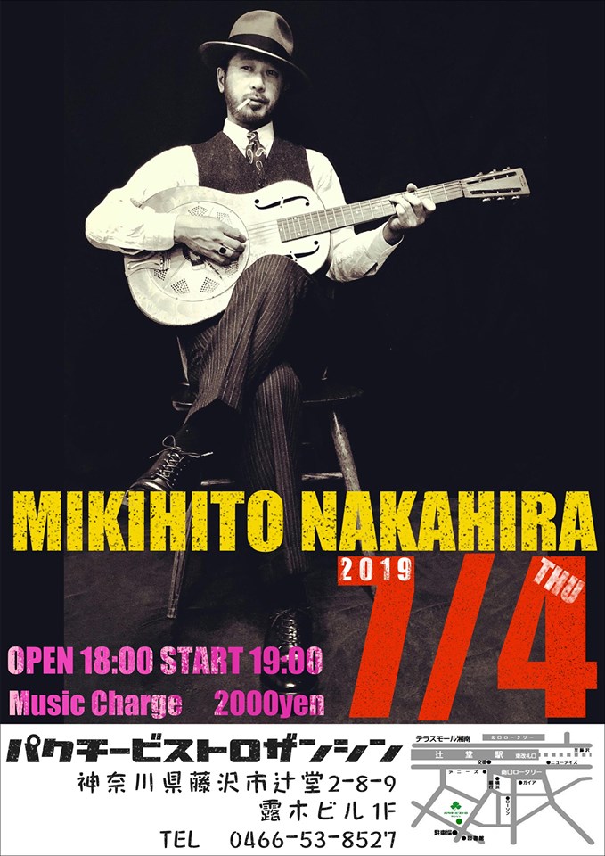 ■出演■ ナカヒラ ミキヒト ■日時■ 2019/7/4 Open 18:00- / Start 19:00- ■料金■ \2,000 ■場所■ 「パクチービストロ ザンシン」 神奈川県藤沢市辻堂2-8-9 露木ビル1F Tel. 0466538527 Facebook Page