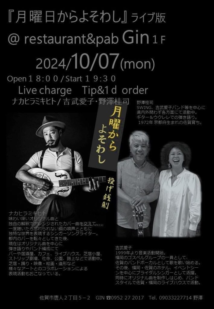 〜 restaurant&pab Gin Live 〜 吉武愛子 with 野澤桂司 × ナカヒラミキヒト